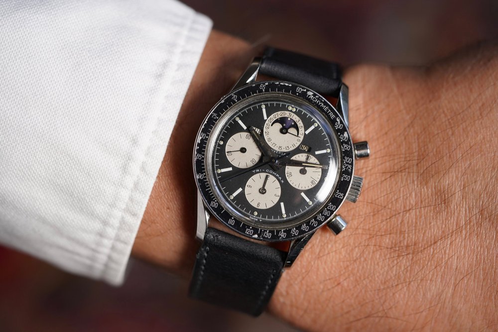 يعد Universal Genève Tri-Compax نموذجًا رائعًا للغاية مع قرص Evil Clapton. القضية مصقولة بخفة. يعود تاريخه إلى منتصف الستينيات.