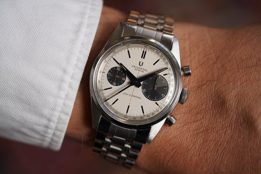 تشتهر شركة Universal Genève على نطاق واسع بتأثيرها على ساعات اليد المعقدة خلال القرن العشرين. يعد مرجع UG Uni-Compax “Big Eye” 884100/01 مرادفًا لتكوينات القرص الفرعي غير المتماثلة في الكرونوغراف.