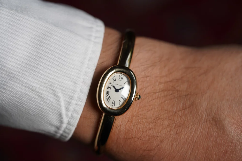 تعتبر ساعة Cartier Baignoire أكثر الساعات النسائية أناقة من كارتييه في الوقت الحالي. ترتديه فرقة It Girls في نيويورك ولسبب وجيه! الجميع يحبه. كان من الممكن أن يتم إنتاج الساعة في 100 نسخة.