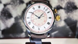 هي ساعة الطيار في قمرة القيادة العسكرية، وتأتي هذه القطعة العتيقة في علبة معدنية بيضاء وتحتوي على ميناء بورسلين مزود باحتياطي طاقة لمدة 8 أيام.